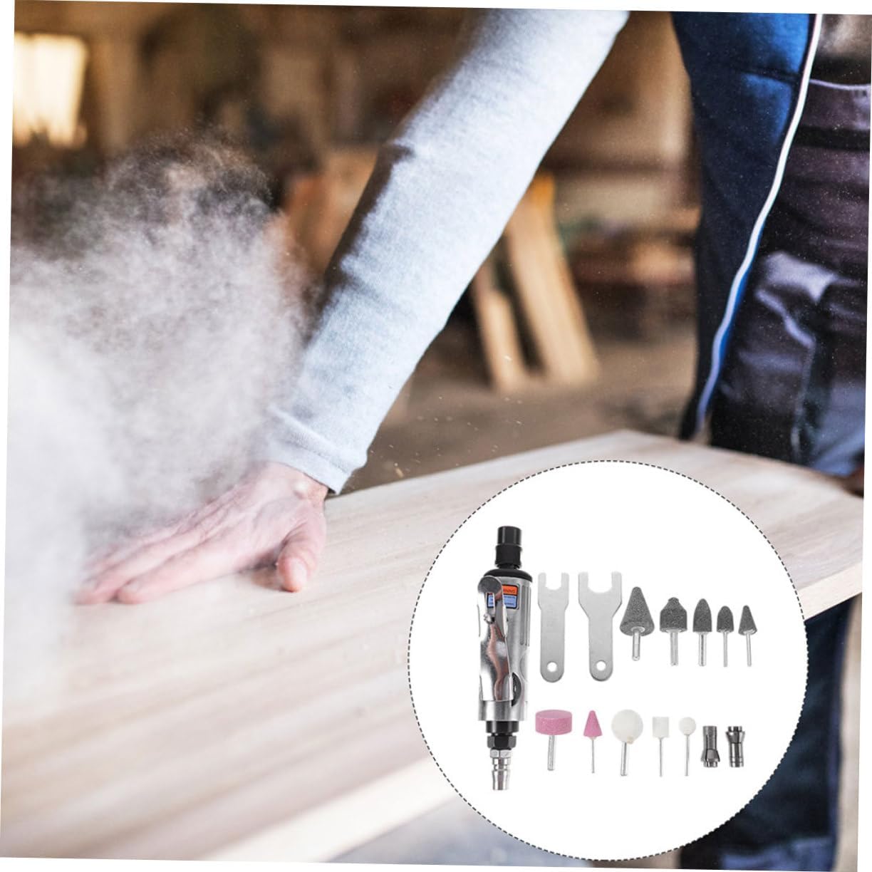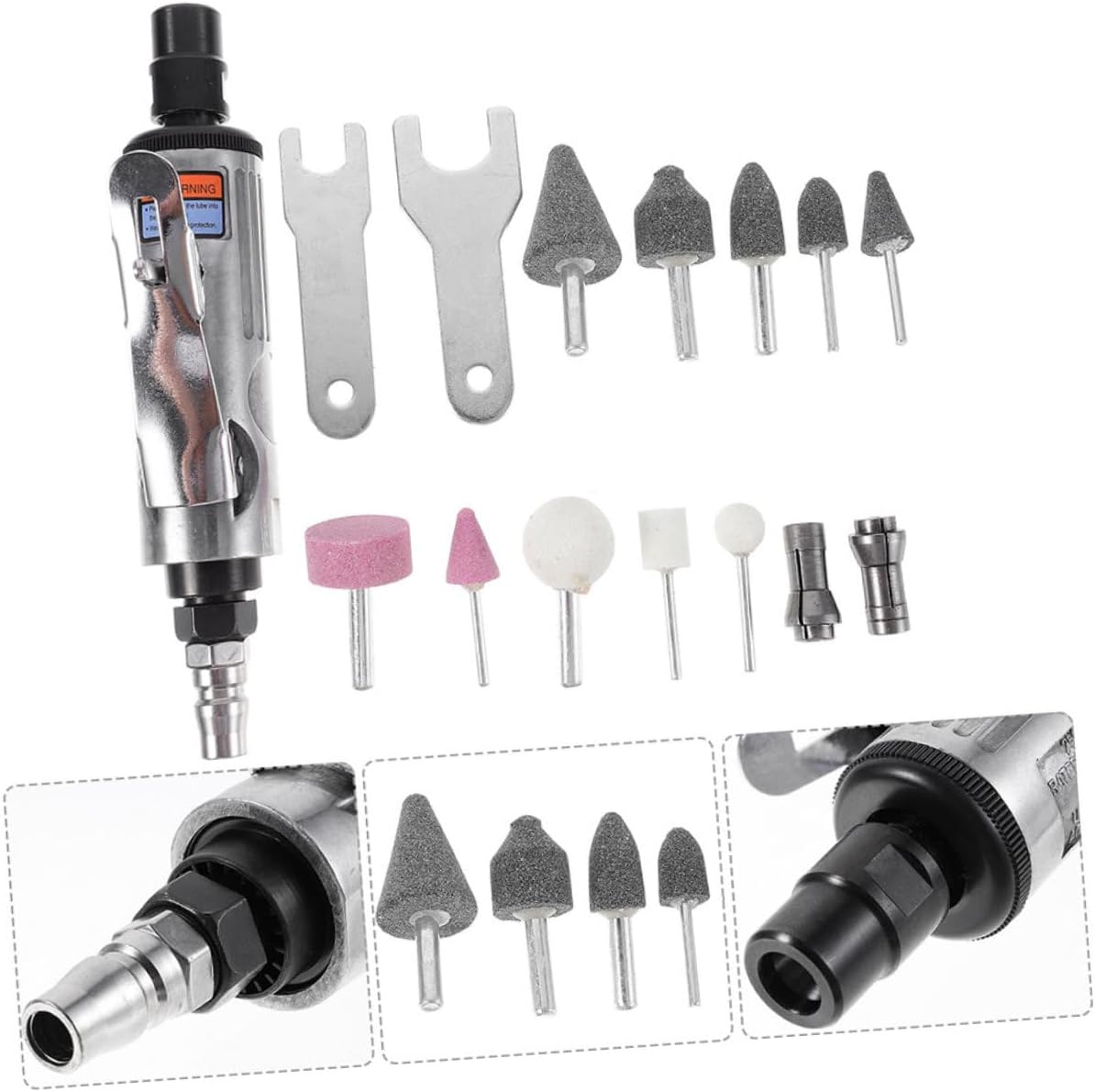 Package Include 1 x wrenches 1 x 3mm chuck 1 x 6mm chuck 1 x inlet connector 5 x 3mm grinding heads 5 x 6mm grinding heads Characteristics Air inlet size: 1/4 (inch) die air tool -Color:Assorted Color angle die - User-friendly design: Simple operation allows for easy usage by individuals of all experience levels right angle die. - Multi-functional tool: for carving, polishing, and grinding, providing versatility in various applications pneumatic angle. -Note: Without speed regulation air - Enhanced grinding performance: The pneumatic tool assures high efficiency and precision in grinding tasks power die grinders. -Size:18.00X6.00X3.00cm/7.07X2.36X1.18in die -Material:Iron, copper, steel pneumatic - Pneumatic tool is easy to operate, simple operation, suitable for all kinds of people to use angle die air tool attachments. - Simple in structure, this pneumatic tool is easy to use, not easy to deform, you can use it with confidence pneumatic tools.Goods Informationangle die Made with iron, copper, steel materials, it reliability and durability.right angle die air tool Angle air die is easy to handle and convenient to carry.right angle die The simple and user-friendly operation makes the angle air die suitable for people of all skill levels